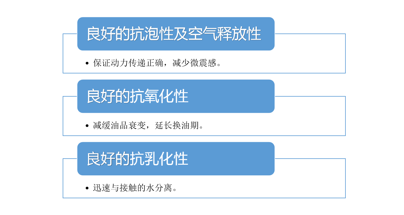 性能特點:具備高粘度指數和低的凝固點;良好的氧化穩(wěn)定性和剪切安定性,抗泡沫和耐磨性能,能極好的滿足各種液力傳動系統(tǒng)。