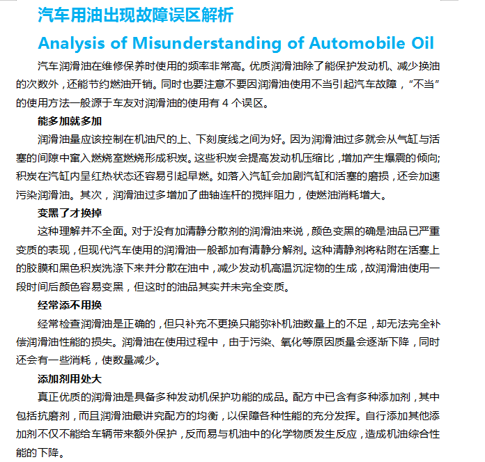 汽車用油出現(xiàn)故障誤區(qū)解析